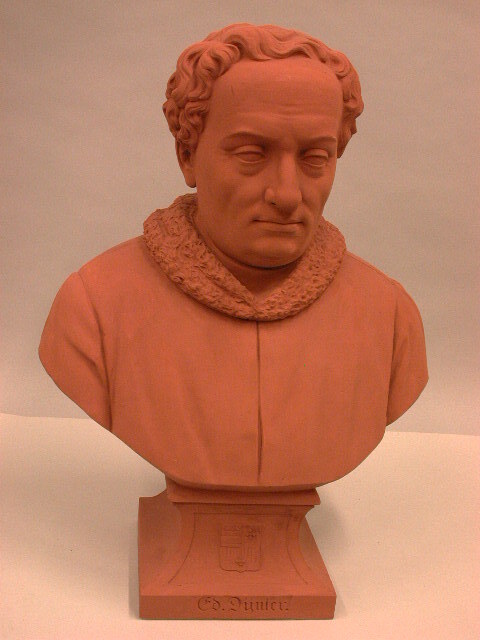 - BeschrijvingEdmundus de Dinther, geb. te Dinther, eind 14de eeuw, sedert 1407 secretaris der Brabantse Hertogen Anthonis, Jan IV, Philips van St. Pol en Philips de Goede, schrijver van de Cronicon Ducum Brabantiae, Å1448. Inscriptie op sokkel: Ed. Dijnter