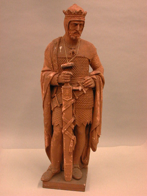 - BeschrijvingVolgens inv.boek behorend tot een totaal van zes stuks: twee vliesridders en vier schildknapen (zie Koldeweij 1983).