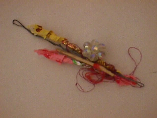 Geel/roze gebedsstokje met kristal