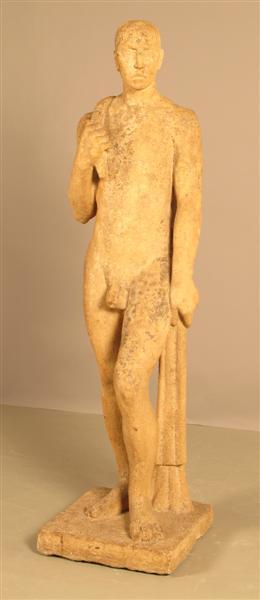 Staande naakte man op sokkel die een reep stof over zijn rechterschouder draagt. De man stelt Ahia of Achia (Hebreeuws voor 'mijn broeder' is Jahwe) voor, een profeet uit Silo die aan Jerobeam, een dienaar van koning Salomo, de scheuring van diens rijk voorspelde. Jerobeam voorspelde bij het koningschap over de noordelijke tien stammen van Israƫl. Deze voorspelling werd buiten Jeruzalem gedaan, zo staat in het bijbelboek Koningen beschreven, waar een ontmoeting plaatsvond tussen Ahia en Jerobeam. Ahia scheurde zijn nieuwe mantel in twaalf stukken, om er tien aan Jerobeam te geven, als symbool van de tien volkeren. Niel Steenbergen heeft ervoor gekozen om de profeet af te beelden met het overgebleven deel van zijn mantel in zijn hand.