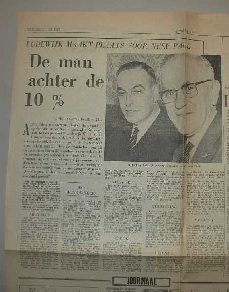 - BeschrijvingArtikel uit De Telegraaf van vrijdag 2 juni 1967 betreffende het afscheid van Lodewijk de Gruijter als voorzitter van de Raad van Bestuur en de overname van deze positie door Mr. Paul de Gruijter..