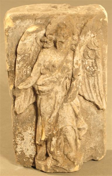- TitelGevelsteen met voorstelling van staande engel met palmtak