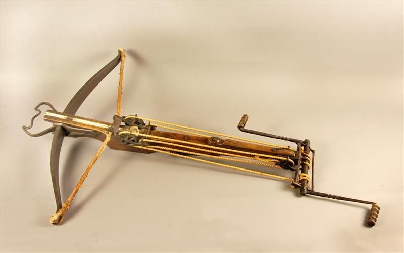 Met been en koper ingelegde lade. Voorzien van de spankatrol. Zeer waarschijnlijk is dit de voetboog, die vermeld staat in de Rekeningen van het Provinciaal Genootschap, 1845-1846, als: Rekening Van Spaendonck te Tilburg. Deze zou gebruikt zijn bij de schutterij van de Ouden Voetboog te Tilburg. In inventarisboek vermeld als zijnde mogelijk afkomstig van een der Bossche schutterijen.