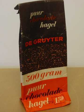 Plat gevouwen zakje. Bovenste rand is bruin gekleurd, daaronder een rand met hagel, dan een kleinere witte rand en onderop een oranje-rood kleur (deze kleuren gaan rondom door). Het zakje zat vroeger boven aan dichtgevouwen, dus het liep spits toe. Op alle zijden staat tekst. De voorkant is een beetje beschadigd. De prijs staat op voor- en achterkant.