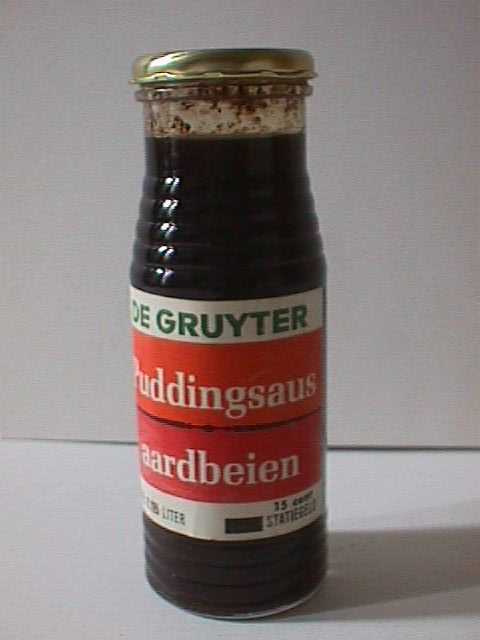- BeschrijvingGlazen pot met een metalen klemdeksel. Het etiket is wit, met oranje en rood. Op het etiket staat in groen, wit en zwart tekst.