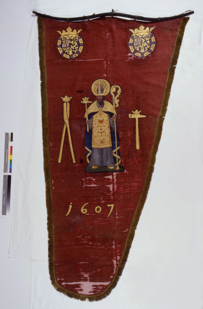 Vaandel met dwarsstok en stok van het Bossche smedengilde St. Eloy