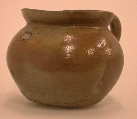 - BeschrijvingRoodaarden, bruin geglazuurde pot zonder poten of standring, met uitgebogen monding en oor -lensvormige bodem -bolvormige lichaam met draairingen -hoge wijd uitstaande mondrand -bandoor aangezet op rand en buik -bruingrijs gevlekt loodglazuur