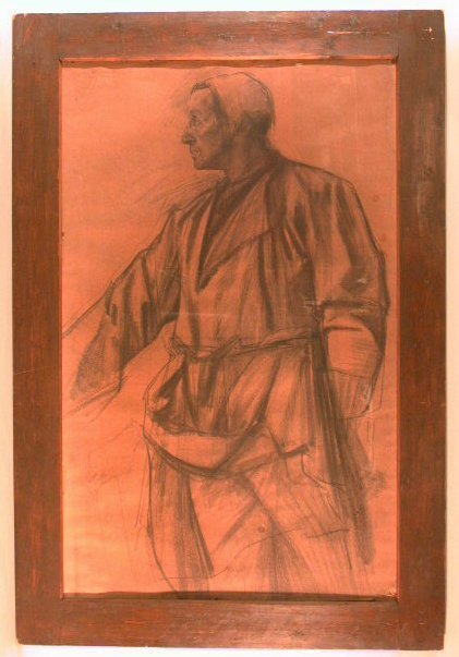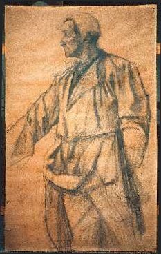 - BeschrijvingVoorstudie van een figuur uit het centrale thema van de Eerste Bossche Wand, de stichting van de stad 's-Hertogenbosch, in het stadhuis van 's-Hertogenbosch