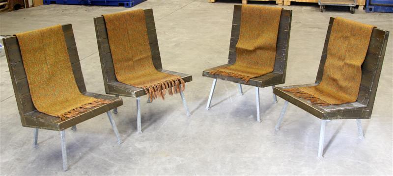 - BeschrijvingFauteuil zonder armleuningen op stalen poten. Bijbehorend los kleed. Dit meubel is afkomstig uit het atelier van de edelsmid Jan Noyons uit Utrecht. In zijn atelier werden van 1964 tot 1988 tentoonstellingen gehouden.