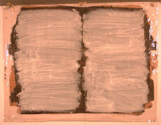 - BeschrijvingBeschilderde voederzak, houten object (beschilderd), uitvergrote polaroidfoto in perspex lijst, ets in perspex lijst.