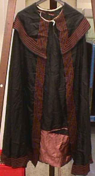 Een zwarte cape behorend bij het toneelkostuum 'mr. Johannes Polyander'