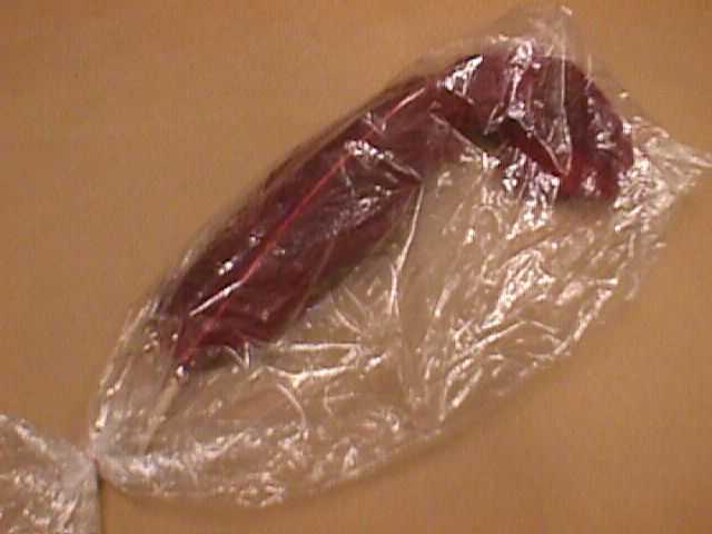 Een rode struisveer. Dit kostuum werd gedragen door jonkheer M.C. van Rijckevorsel tijdens de maskerade van het Leidse studenten-corps in 1910. Deze maskerade had als thema 'De blyde incomste van syne hoogheyt Frederick Hendrick, vergese schapt van haare majesteyt Henriëtte Maria, coninginne van Groot-Brittanien'. Mr. Johannes Polyander genaamd Van den Kerckhoven, was heer van Kerckhoven, Heenvliet en Sassenheim, Luitenant-Houtvester, Groot-Jagermeester en Groot-Valckenier van wege de Ed. Groot Mog. Heeren Staten van Holland en West-Friesland, Superintendant van het Hof en de Affaires van H.K.H. Maria, Prinses van Engeland, Prinses Douarière van Oranien.