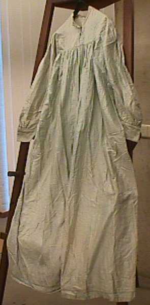 Een lange blauwgroene jurk.