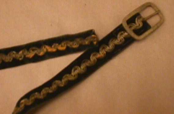 - TitelEen donkerblauwe riem versierd met gouddraad