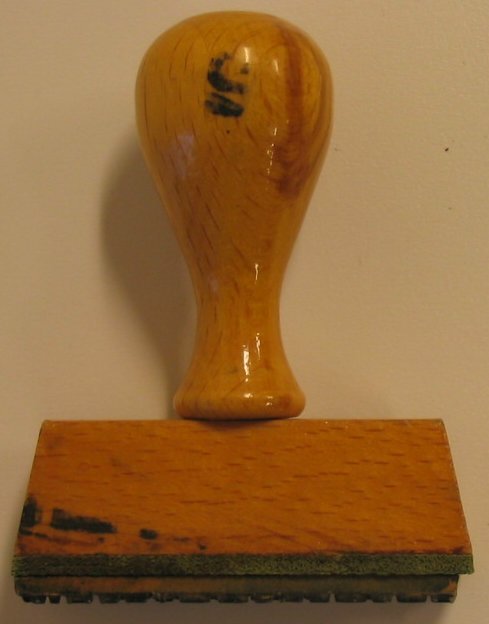 - TitelRubberen stempel met houten handvat en adres van De Gruyter