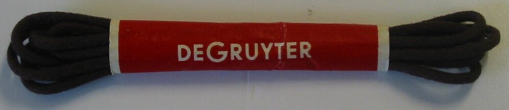 - BeschrijvingOpgerolde veters, bruin. Samengebonden met een stukje rood papier. Op het papier staat tekst.