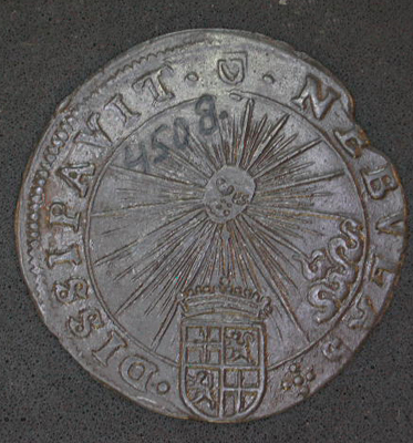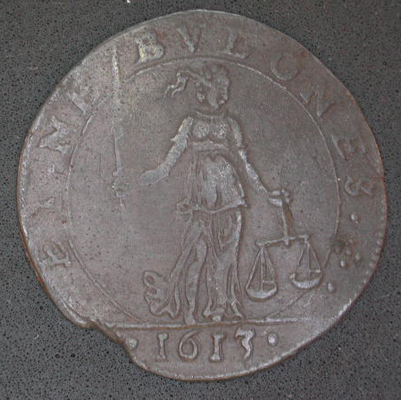 Vz: Binnen een getrokken rand een stralende zon die de wolken opjaagt midden onder het wapen van de Staten van Utrecht. Tussen de getrokken rand en een parelrand het omschrift. Kz: Binnen een getrokken rand een staande Justitia met blinddoek zwaard en weegschaal. In de afsnede het jaartal 1613. Tussen de getrokken rand en een parelrand het omschrift