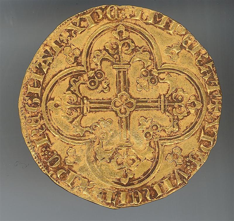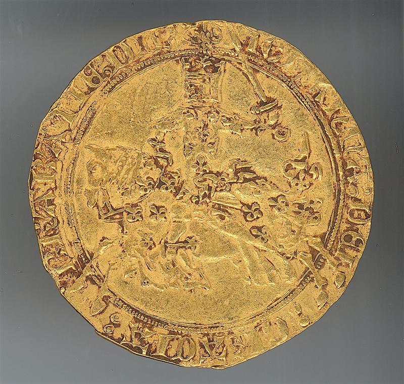 - BeschrijvingOp de voorzijde van de munt is een gewapende ridder te zien; op de keerzijde een kruis.
