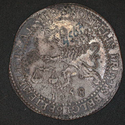 - BeschrijvingVz: De Nederlandse leeuw met een pijlenbundel en een weegschaal in de klauwen onder de leeuw het jaartal 1658. Tussen twee parelranden het omschrift. Kz: De wapens van de Zeven Verenigde Nederlanden geschaard rond een vrijheidshoed. Daaromheen het omschrift en een parelrand.