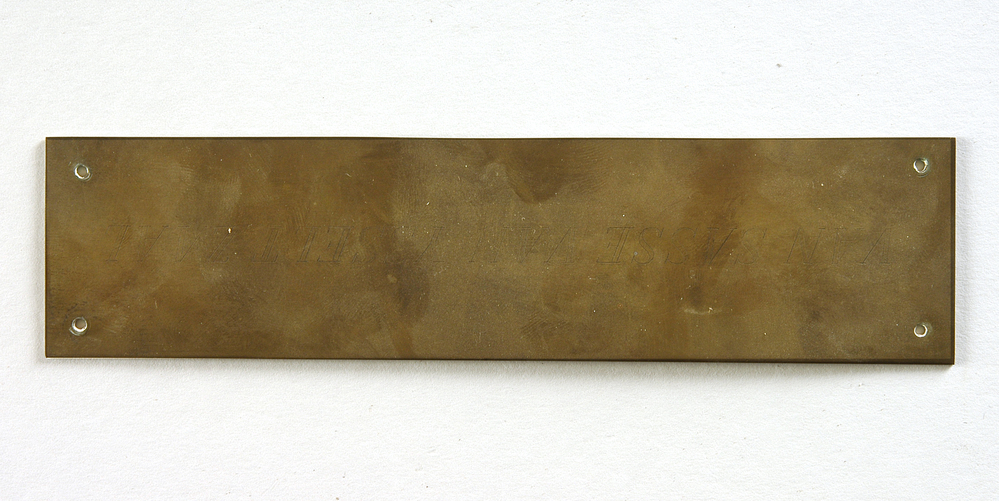 .Rechthoekig bordje met daarin een gegraveerde tekst.