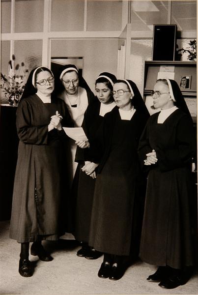 Zuster Carmelitessen van het Goddelijk Hart van Jezus zingen voor een groep bejaarden die zij een dag lang ontvangen hebben, Vogelenzang