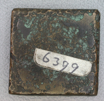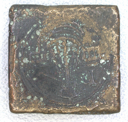 - BeschrijvingVierkant gewichtje in lage broodjesvorm, 0,3 x 1,5 x 1,5 cm, ca. 5 gram met aan de ene zijde een lopende leeuw met gevorkte staart in een goeddeels van het gewichtje afvallende cirkel, aan de andere zijde het wapen van Amsterdam (?) met Habsburgse kroon (?). Twee leeuwen als dragers en tussen de letters P en G.