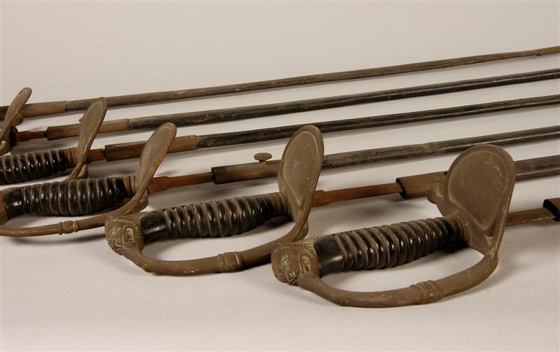 - BeschrijvingModel 1875, 'degen nr. 1'. Geelkoperen gevest, houten (?) greep, blank metalen tweezijdige kling. Onbewerkte stootplaat. Zwarte leren schede, met boven- en onderband van geel koper.