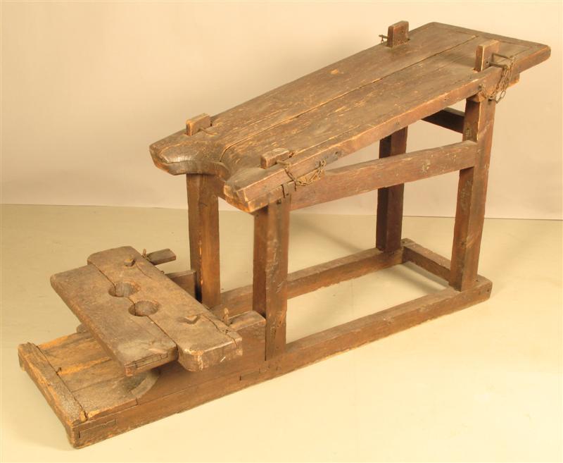 In 1863 aan het Provinciaal Genootschap geschonken, zijnde "een zoogenaamd schavot, of liever houten blok, waarop gevangenen in het huis van Reclutie (?) en Tuchtiging, aan wie zoodanige straf was opgelegd, gekleed met hemd en linnen broek (voorover vastgehecht, en met rietslagen (zoo het schijnt vroeger met de zoogenaamde bullepees) gestraft werden". Genoemde straf werd in 's-Hertogenbosch voor het laatst in 1830 toegepast.