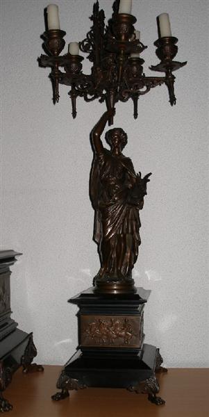 Kaarshouder van een klokstel bestaande uit een pendule en twee kaarshouders