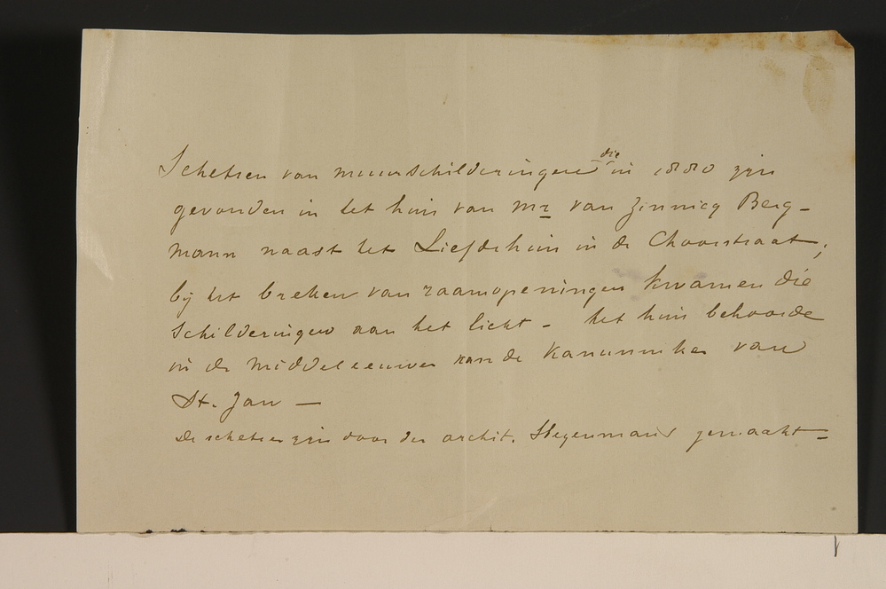- TitelVerklarend briefje bij de tekeningen van muurschilderingen aangetroffen in een huis aan de Choorstraat te 's-Hertogenbosch