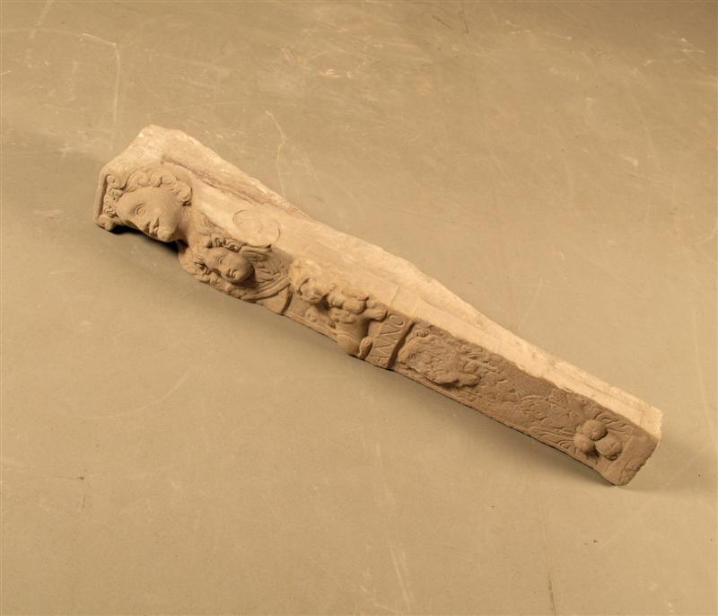 - BeschrijvingLos bovenstuk met leeuw als schildhouder mannenhoofd, engelenkopje, zittende leeuw, leeuwkop, gestileerd plantenmotief. Vgl.inv.nrs. 1420-1424. Bovenstuk ingeschreven onder inv.nrs. 1433-1438. Opschrift: ANNO [1649]