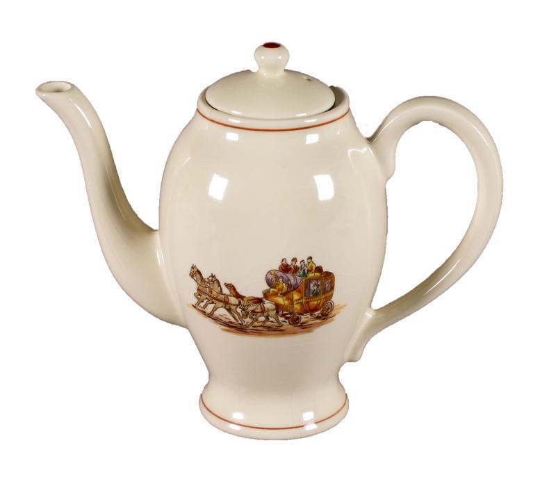 Mokkapot uit het servies vervaardigd in opdracht van de BBA (Brabantse Buurtspoorwegen en Autodiensten)