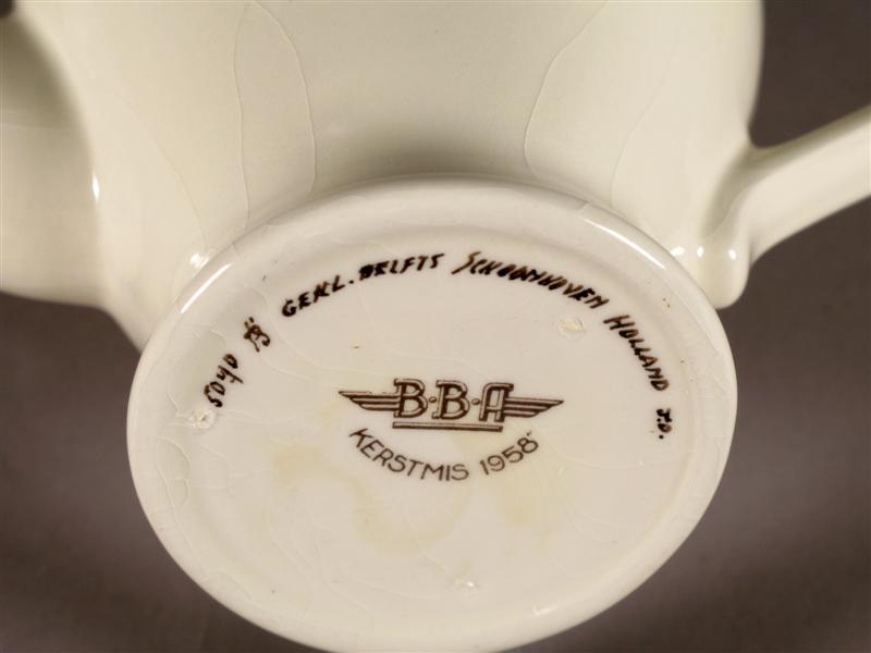 Deze mokkapot is onderdeel van een kerstpakket van de vervoersdienst BBA (Brabantsche Buurtspoorwegen en Autodiensten). In 1958 ontvingen gehuwde werknemers het mokkaservies, met onder andere deze mokkapot. Het servies bestaat verder uit een suikerpot, een roomkan en zes koppen en schotels. Vrijgezelle werknemers kregen een ander, minder uitgebreid kerstpakket.