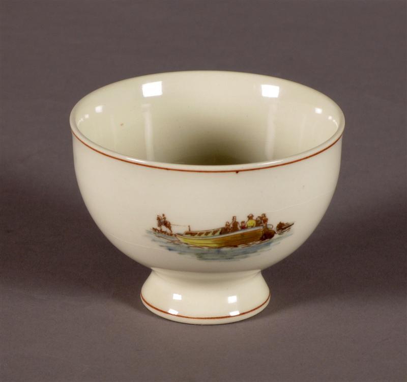 Op de suikerpot is een trekschuit met passagiers afgebeeld. Aan de voet en de rand zijn twee roodbruine sierstrepen aangebracht.