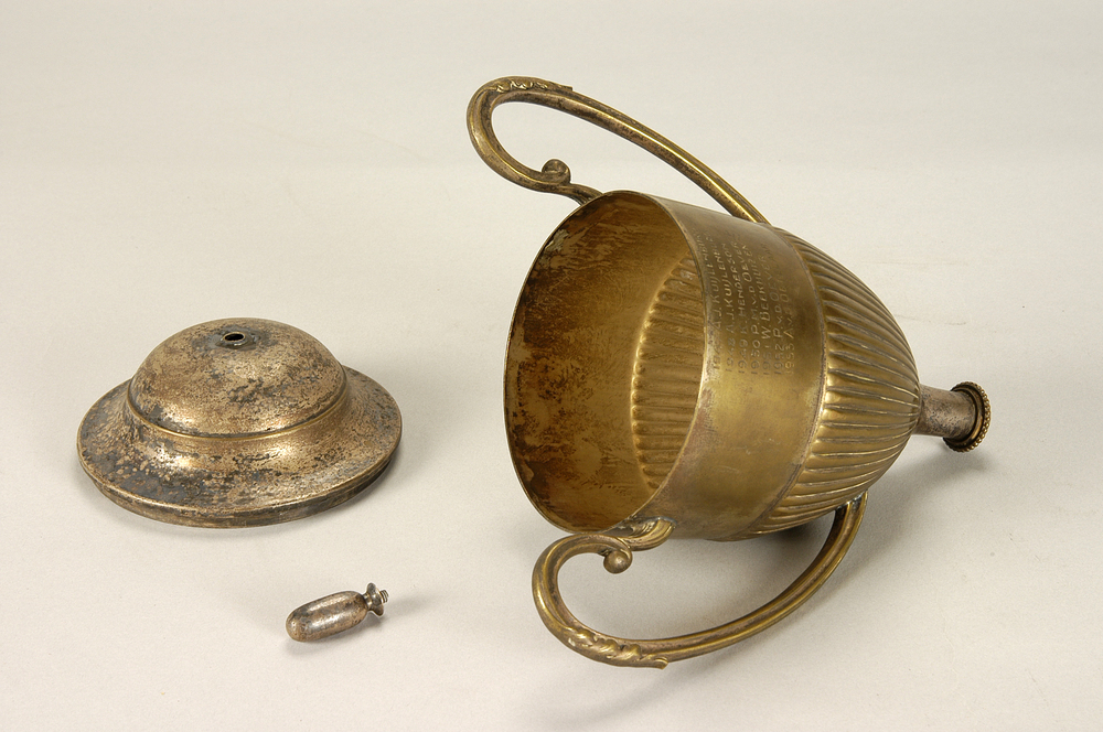 - BeschrijvingTekst op beker: 1947 A.J. Kuijlenburg; 1948 A.J. Kuijlenburg; 1949 K. Henderson; 1950 P.M. v.d. Oever; 1951 W. Beekhuizen; 1952 P. v.d. Oever; 1953 A. v.d. Oetelaar.