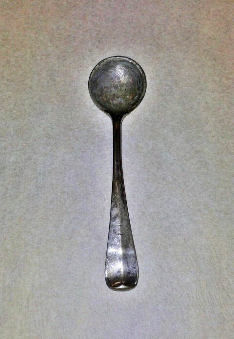 - BeschrijvingDe lepel heeft een ronde bak en een opstaand randje in het midden bij het steeluiteinde.