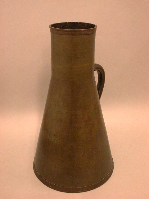 - BeschrijvingStandaard natte maat: buitenzijde, t.o. oor, op hals gegraveerd: "15 LITRE" Op buik gegraveerde voorstelling van een boschboom en het jaartal 1827 en "S.BOSCH."
