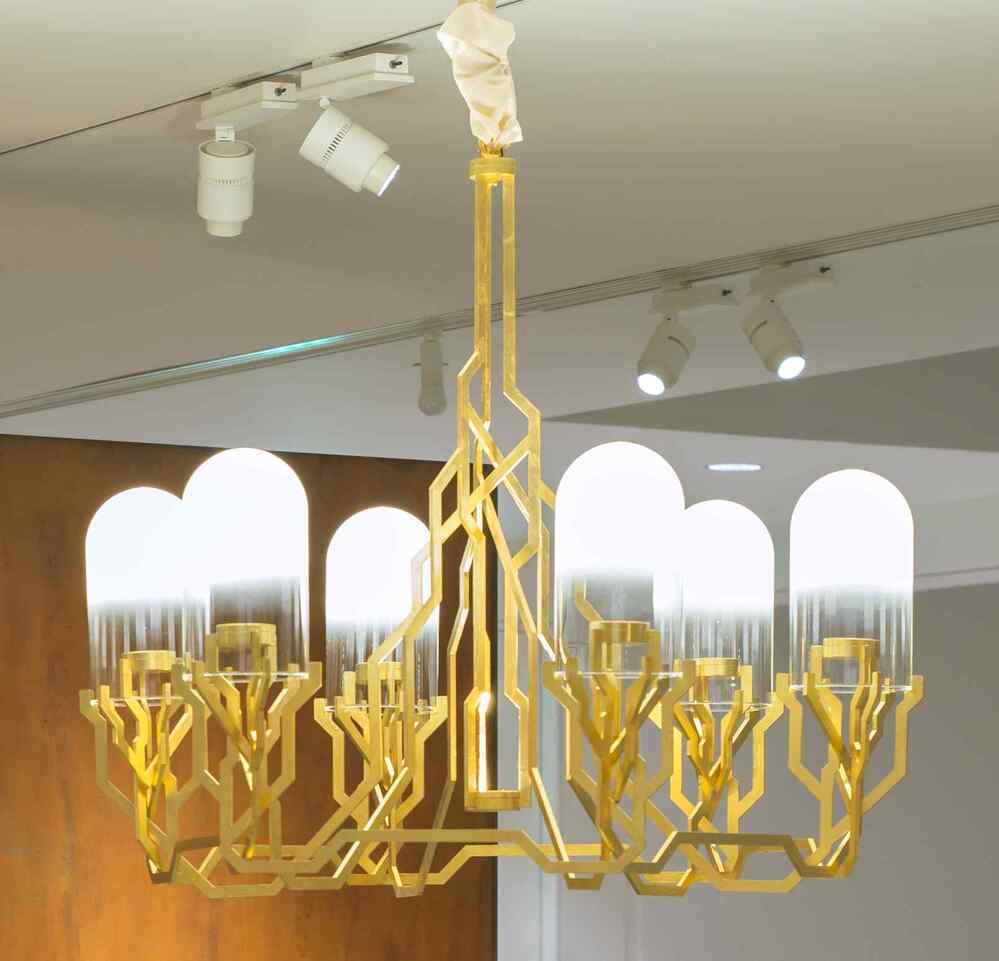Deze kroonluchter heeft een ingenieus ontwerp van drie takken met vertakkingen. De kleinere herhaling van deze vertakkingen komen uit in 6 lichtpunten waarop 6 glazen stolpen staan. Als afwerking is het staal van de kroonluchter verguld met bladgoud. In het midden is er nog een zevende lichtpunt. Dit ontwerp is speciaal gemaakt voor de tentoonstelling in Het Noordbrabants Museum.