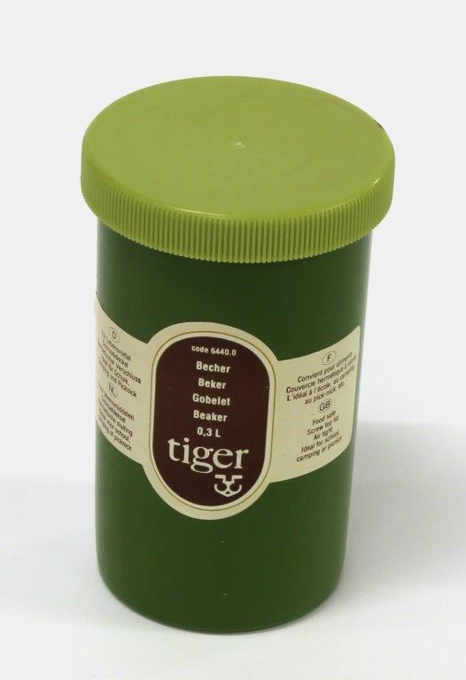 - BeschrijvingUitgevoerd in licht en donkergroen. Inhoud 0,3 liter met schoefdeksel en productsticker.