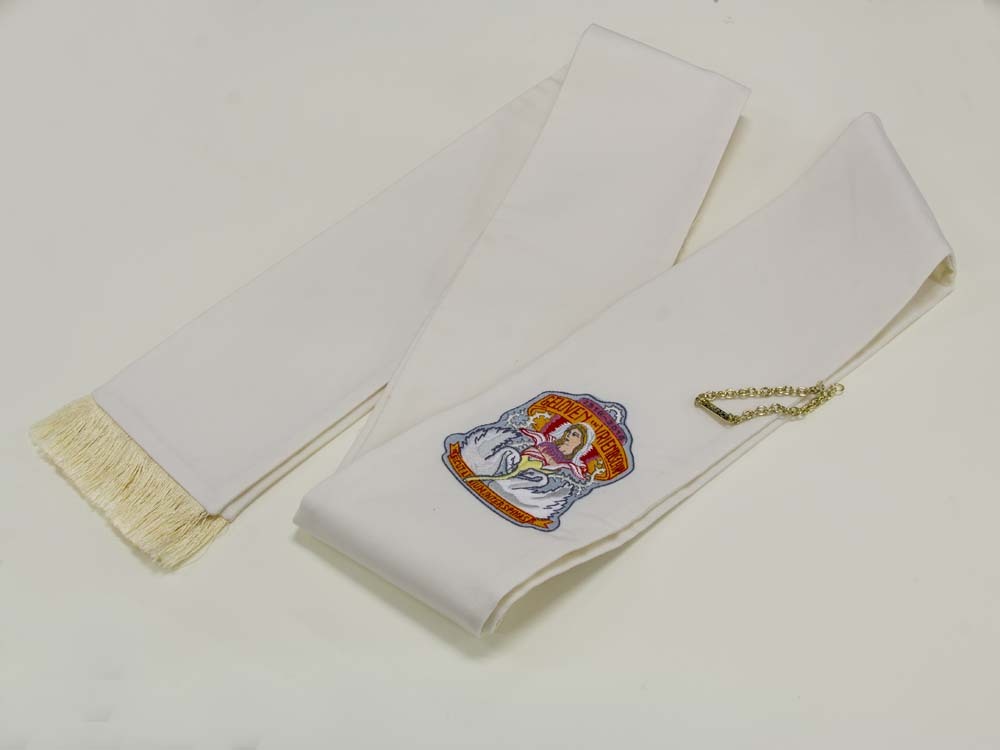 - BeschrijvingStola vervaardigd ter gelegenheid van de viering in de Kathedrale Basiliek van Sint-Jan voor de officiële opening van de tentoonstelling “Geloven in vriendschap. 700 jaar Zwanenbroeders in ’s-Hertogenbosch” op 16 februari 2018.