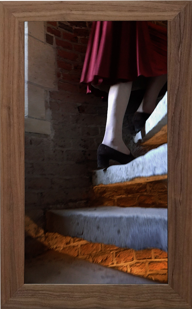 Deze gedachten heeft zij verwerkt in de filmloop Wenteling. Deze is op locatie in ’s Hertogenbosch gemaakt (In de toren van de st. Jan)