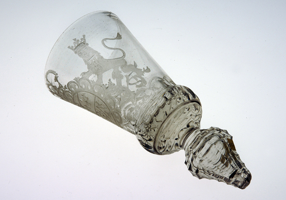 - BeschrijvingCuppa: wapen van Anna van Hannover, dochter van George II van Engeland, echtgenote van Prins Willem IV. Zie ook inv.nr. 07141. Geringe verschillen in detaillering van kroon en decoratief bladwerk