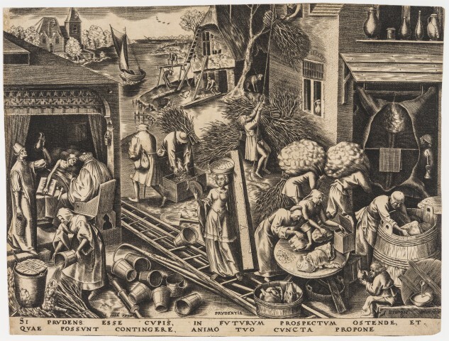 Onderschrift: "SI PRVDENS ESSE SVPIS, IN FVTVRVM PROSPECTVM OSTENDE, ET QVAE POSSVNT CONTINGERE, ANIMO TVO CVNCTA PROPONE" Uit de serie van de 7 deugden. Enige staat.