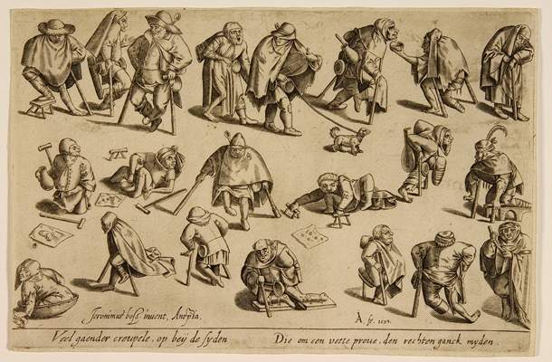 - BeschrijvingEenentwintig verschillende kreupelen en bedelaars.