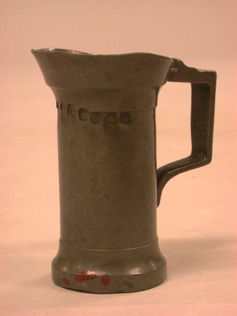 - BeschrijvingTinnen maatje van het klassieke model, daterend uit het midden van de 19de eeuw (F. van Engelen, 1836-1861). Op de handgreep de maataanduiding 'HALF NEDERLANDSCH MAATJE'. Het maatje is voorzien van 14 ijkmerken (1869-1883) en een ijkmeesterteken (M.M. Caijaux, zie Dubbe 1978, p. 139: eikel in ovaal).