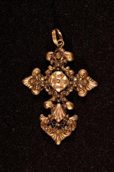 - BeschrijvingHangkruisje van cantiergoud met vele fijnbewerkte knopjes. Gezien de zeer gebrekkige en onvolledige informatie kan het hier ook gaan om een kruisje met inv.nr. 8790, 8800, 8806 of 9100.