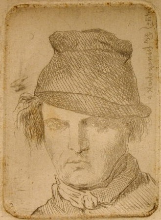 Afgebeeld is een man, hij draagt een halsdoek en een pet.