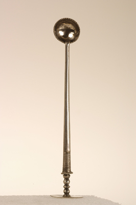 Bestaande uit pin en huls. De ronde, gladde pin wordt bekroond door een platte, ronde dop met kartelrandje. Bovenste deel van de pin voorzien van een schroefdraad. De huls bestaat uit een holle, ronde, gladde schede, eveneens bovenaan voorzien van schroefdraad en onderaan eindigend in half bolvormig schepje met getand randje. Pin kan in de huls geschroefd worden.