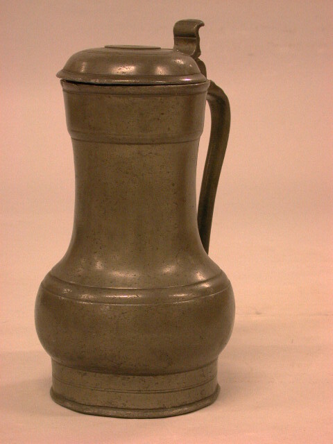Rembrandtkan van het Nijmeegs type. Glad en versierd met enkele ingedraaide ringen. In het medaillon op deksel naast het roosmerk de eigenaarsinitialen IS. De deksel is met een dubbelkakig scharnier bevestigd aan de handgreep. In de kraag aan de bovenrand een maatnok. In de deksel in wit het oude inv.nr. 23