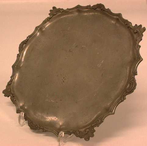 - BeschrijvingHollandse regence-stijl. Glad kabaret met bewerkte rand (rocailles) en staand op vier aangesoldeerde pootjes. Oud inv.nr. 82 in witte verf.